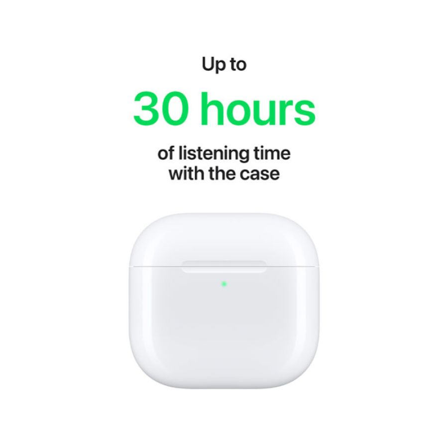 H2 headphone chip Dust, sweat, and water resistant (IP54) Up to 5 hours of listening time USB‑C Charging Case