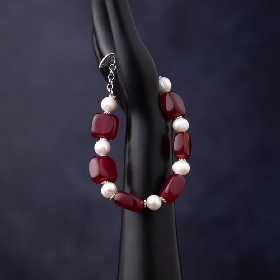 "Color: White and Maroon Material: Real Pearl and Gemstone Value Addition: Length: 15.24 CM Measurement Unit: CM Type: Adjustable Unit: Single Care: Store them in a soft cloth pouch or a separate jewelry box to prevent scratches"