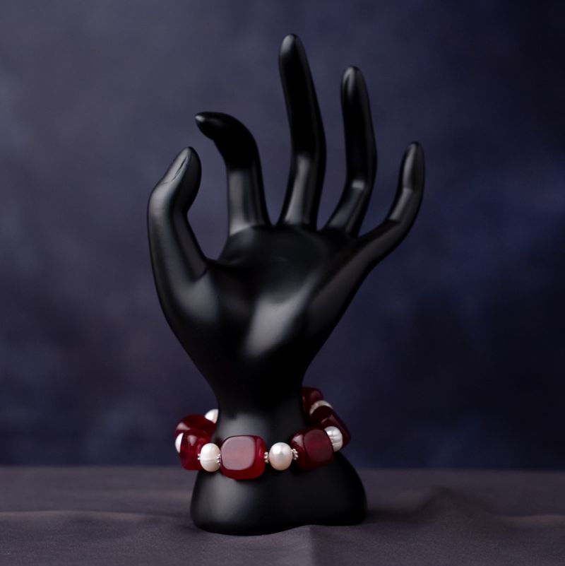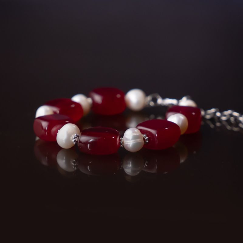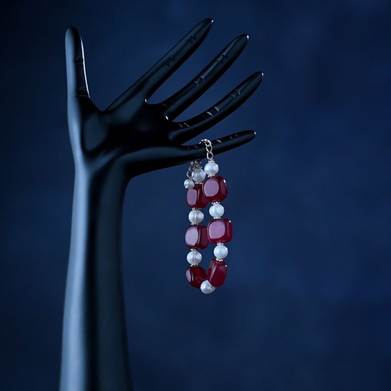 "Color: White and Maroon Material: Real Pearl and Gemstone Value Addition: Length: 15.24 CM Measurement Unit: CM Type: Adjustable Unit: Single Care: Store them in a soft cloth pouch or a separate jewelry box to prevent scratches"